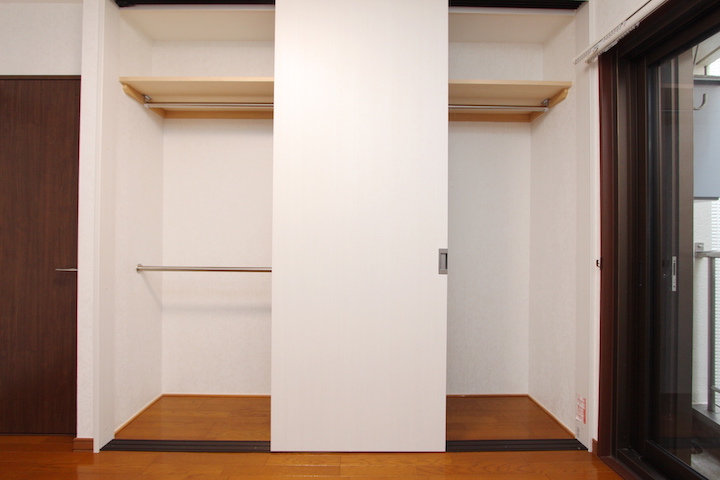 5畳大洋室のクローゼット。中央建具の裏も収納空間になっています。
