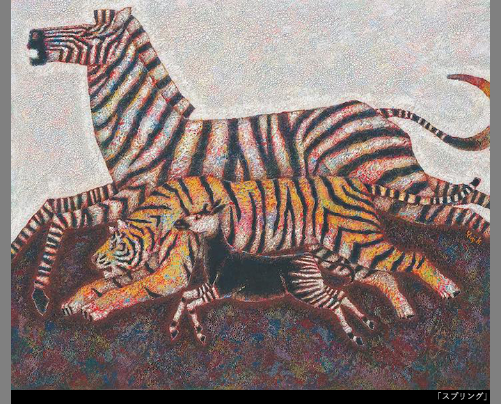 画家としての作品は動物をモチーフにしている。動物たちを見たままに描写するのではなく、自身のフィルターを通すことで動物特有のフォルムを抽出し、その内面性を描き出そうと試みている。