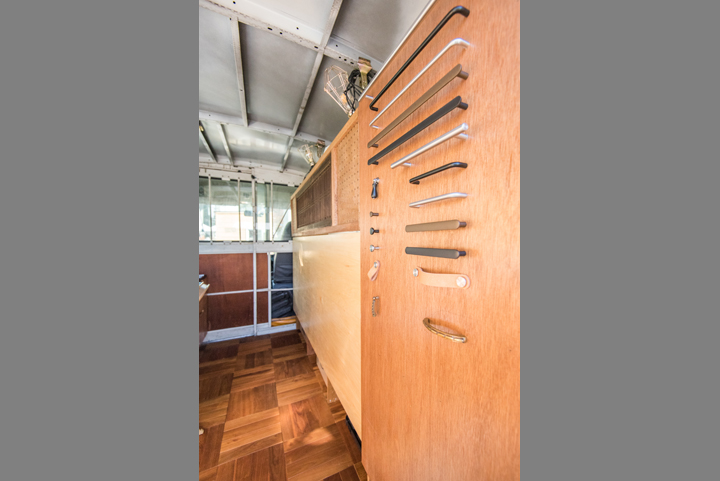 同社はタイニーハウスを製作できる工房と、バンを改造したタイニーハウスたちのベースキャンプを東日暮里に設けていて、今回展示されている2台もそこで製作されました。