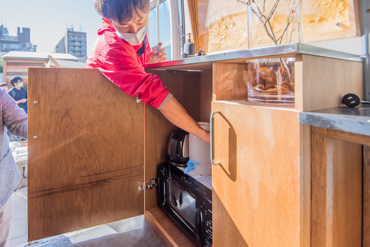 「バンを改造したタイニーハウスの製作をお手伝いするだけでなく、拠点となるベース基地を設けています。そこではシャワーを浴びられたり、食事をつくれたりします。東日暮里のほか、三軒茶屋に2カ所、駒澤大学に1カ所設けていて、さらにポップアップで使える場所は都内に5カ所あります。拠点はもっと増やしていきたいので、場所を貸してくださる不動産オーナーさんを随時募集中です!」(塩浦さん談)