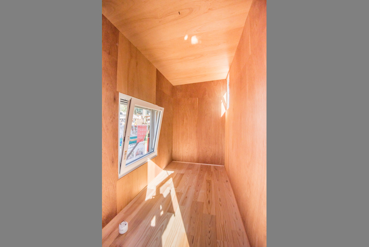 実は完成したのがフェスティバル開催当日の朝(!)と聞いてビックリ! よくぞ間に合ってくれました(笑)。 “出来たてほやほや”のタイニーハウスの室内をさっそくご覧いただきましょう。