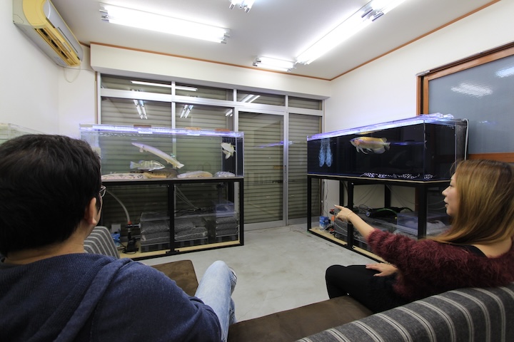 MASAさんは「鶴瀬」駅に購入された元・美容室兼住居をアクアハウスのモデルハウスとしていて、ご自身でアロワナなどの熱帯魚を中心に生き物を飼育しています。