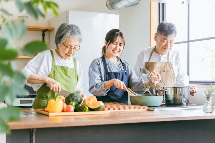 料理を趣味とする仲間とコモンハウスで料理をするイメージ