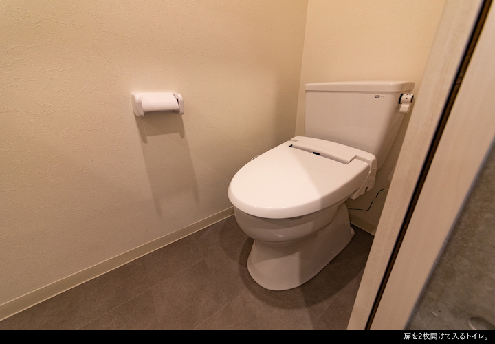 扉2枚を隔てているので、トイレの音は相当セーブできます。