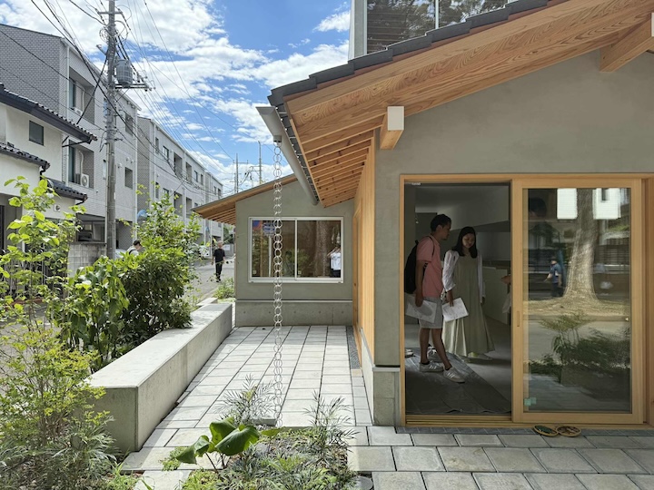今回ご紹介するのは参道沿いに2025年夏に誕生した「大宮氷川町家」です。町家という名称通り、和風の佇まいが特徴で、地元に長らく住む大家さんが駐車場だった土地に建てたもの。参道側から見ると敷地入口に庭のような緑のスペースがあり、ちょっと腰かけられるような空間も。