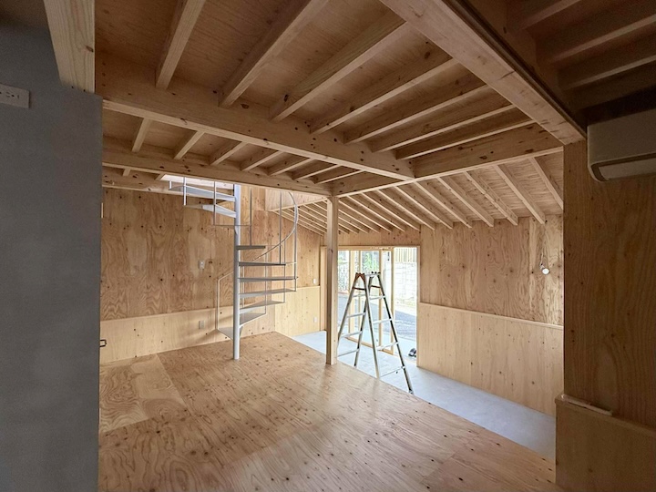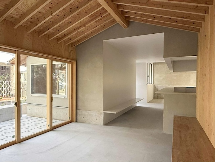 平面図では薄いグリーン部分、併用住宅C区画の1階。土間部分がペット撮影に使われる予定とか(写真提供/アラウンドアーキテクチャー)