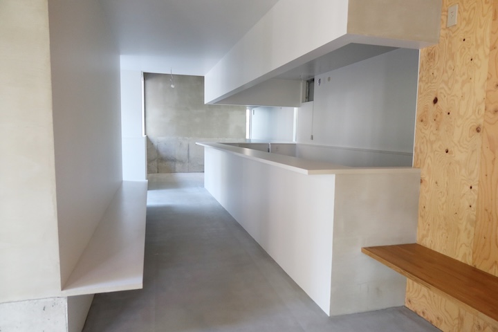 併用住宅2戸はメゾネット。1階の、入ったところに小商い用に使えるスペースがあり、それ自体はそれほど広くはありません。参道寄りのB区画は約8㎡(全体の専有面積は37㎡)、C区画は約12㎡(全体の専有面積は64㎡)となっており、B区画は設計に当たった建築家の乾久美子さんのオフィスの人が借りることになったそうです。その方はいずれ独立する予定とのことで、小商いスペースは建築事務所的な空間となるのだとか。