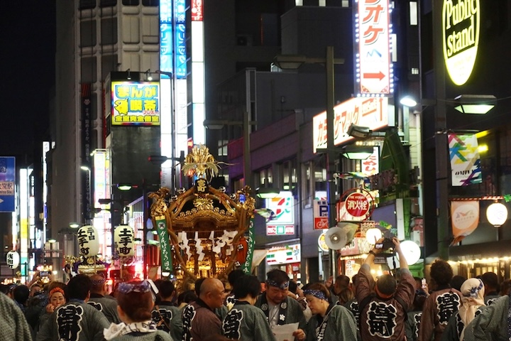 改修が進む一の宮通り。氷川神社から駅に向かっており、通り沿いには古い呉服店、酒屋などのほか、最近は古着店などが増え、若い層が集まるようになっている(筆者撮影)