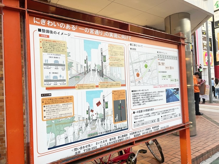 一の宮通り改修の告知。まだしばらくは工事が続く(筆者撮影)