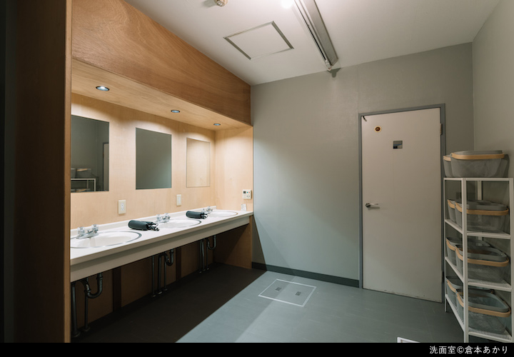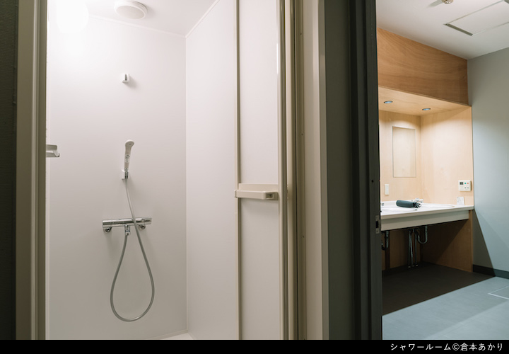 洗面室、シャワー室は男女兼用。シャワー室は鍵付きで、脱衣所もあるので女性の方はご安心を。