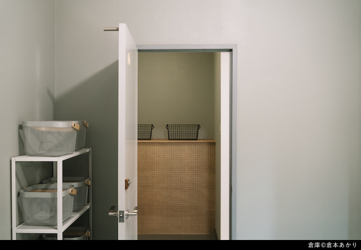 トイレはもちろん男女別。倉庫には一人一区画ずつ専用の棚が設けられているから収納には困らないと思います。