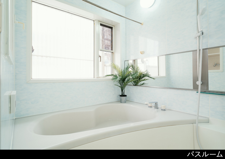 写真をご覧いただくとわかりますが、バスルーム、パウダールームには大きな窓がついていて、とても明るい。広々としていて、ミラーが上手にコーディネートされているのが好印象です。