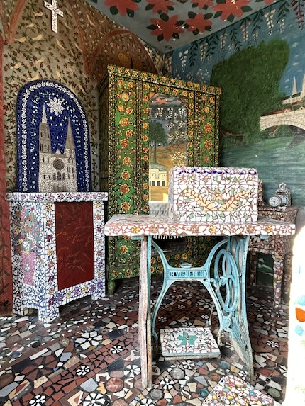 妻アドリアンヌのミシンもモザイクが施されている。踏みペダルまでタイルで覆うという徹底ぶり ©︎Maison Picassiette